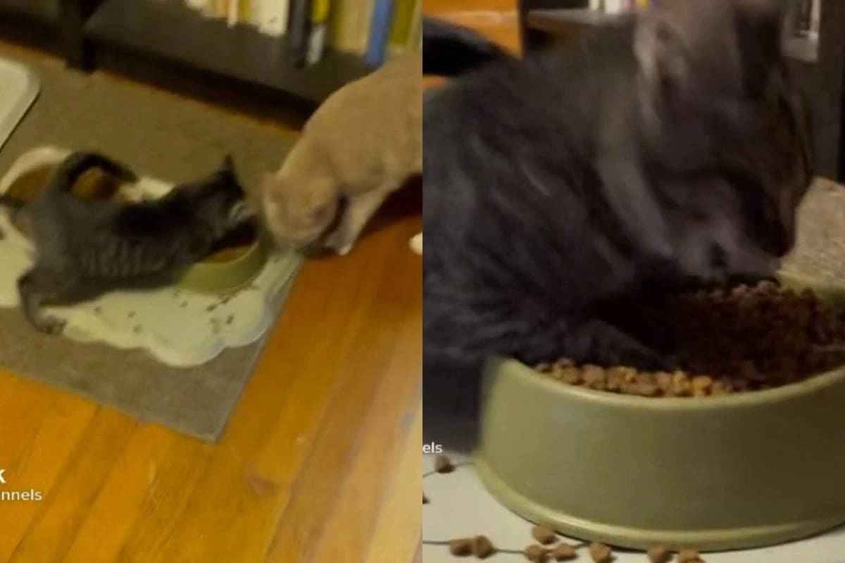 Голубь: хозяйка показала, как ее котенок ест, и это очень смешно