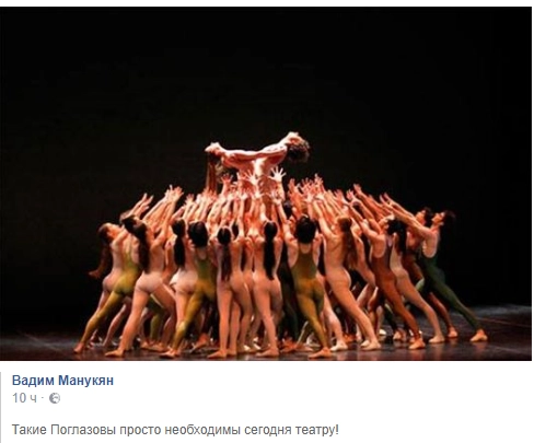 Член экспертного совета по развитию информационного общества и СМИ при Госдуме Вадим Манукян заявил: «Такие Поглазовы просто необходимы сегодня театру!»