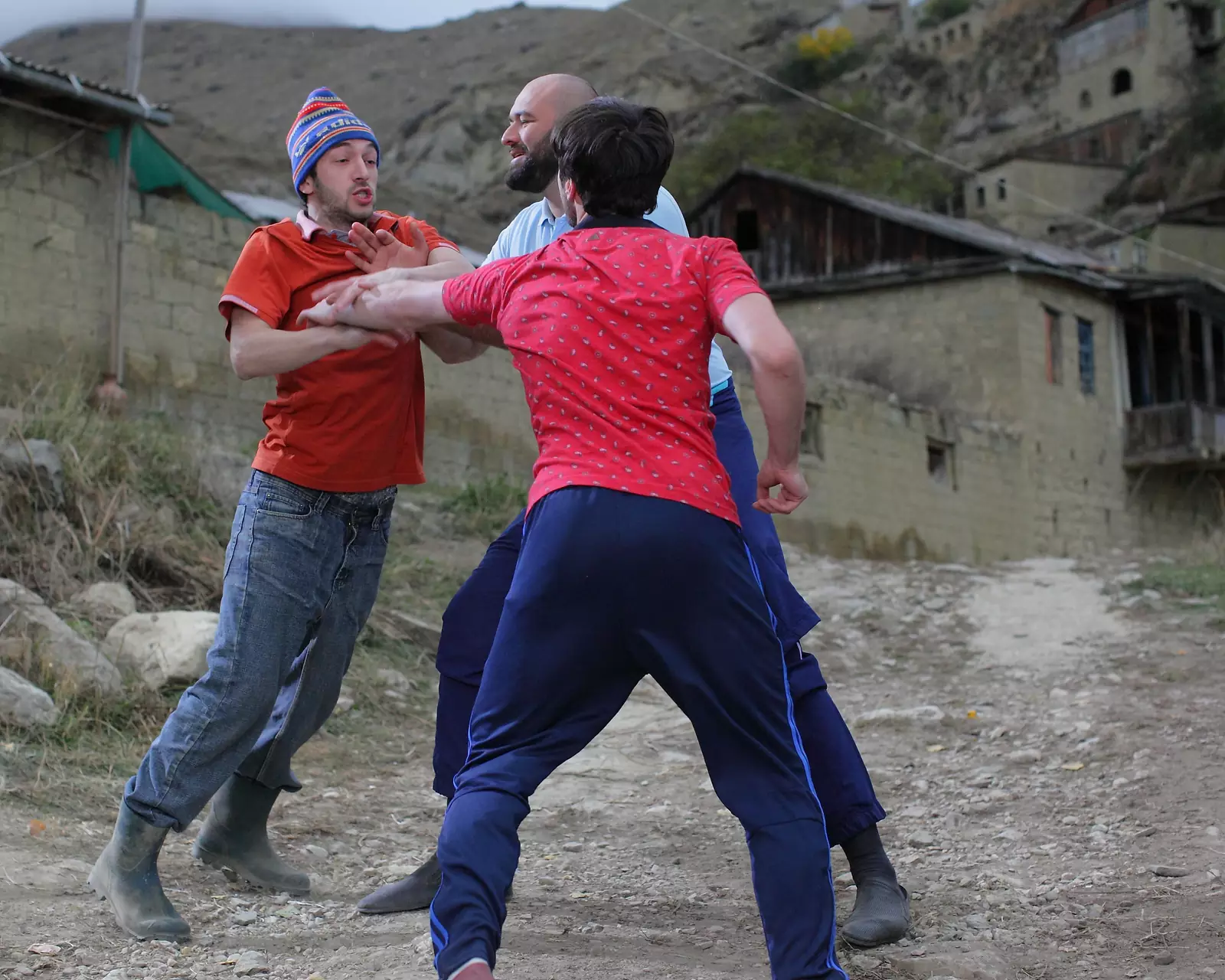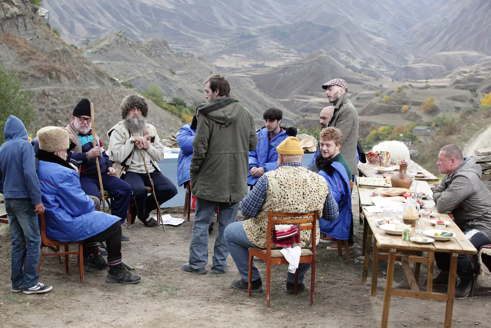Что касается съемок в Дагестане, актерами были местные артисты из Махачкалинского театра, также были просто местные жители. Обед по расписанию, но как-то не очень им это интересно, не то чтобы они какой-то саботаж устраивали, ни в коем случае, ничего не нарушали, но сама атмосфера была какая-то семейная.