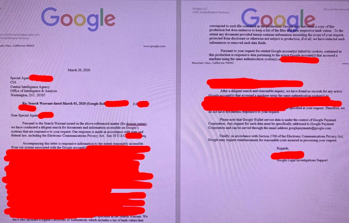 Журналисту удалось собрать массив документов, подтверждающих незаконные действия с персональными данными. Кроме того, ему удалось добыть переписку сотрудника ЦРУ с руководством Google, в которой он запрашивал доступ к аккаунтам политтехнологов и политологов, фигурирующих в грядущем материале Центра «Досье». Также журналист получил доступ к архиву рабочей документации медиа Ходорковского.