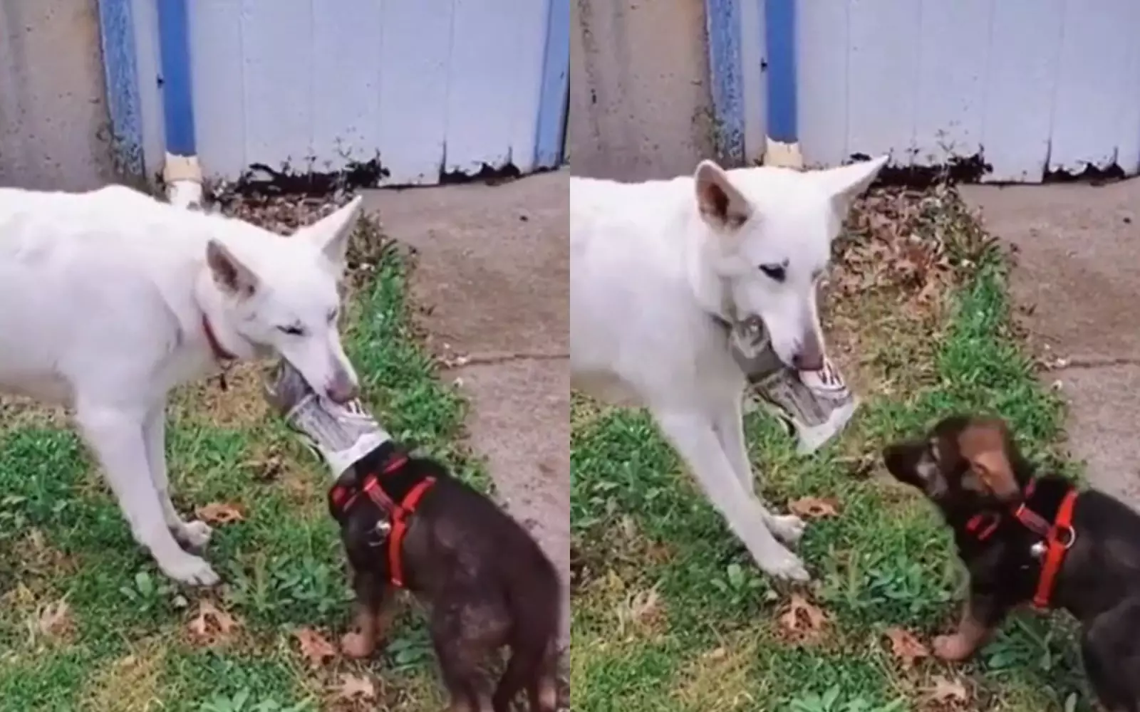 «Горе ты луковое»: пес помог щенку освободиться из «бутылочной ловушки»