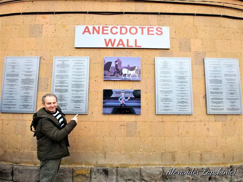 Горе и радость рядом и в ста метрах от церкви и монумента жертвам землетрясения вы можете посетить стену юмора. Как уже говорилось, Гюмри считается столице армянских анекдотов, чем-то вроде армянской Одессы. На этой стене вы можете почитать анекдоты на русском, армянском и английском языках. Мне больше всего понравился такой: