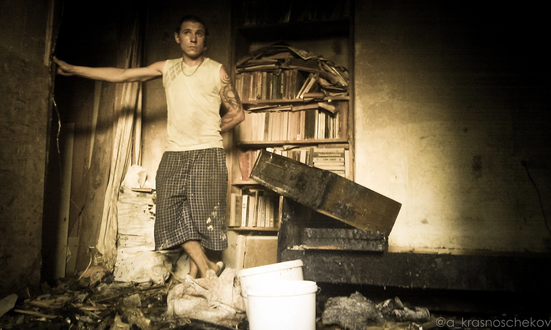 Нас водят по подъездам, по сгоревшим комнатам. Никого не винят, только повторяют: