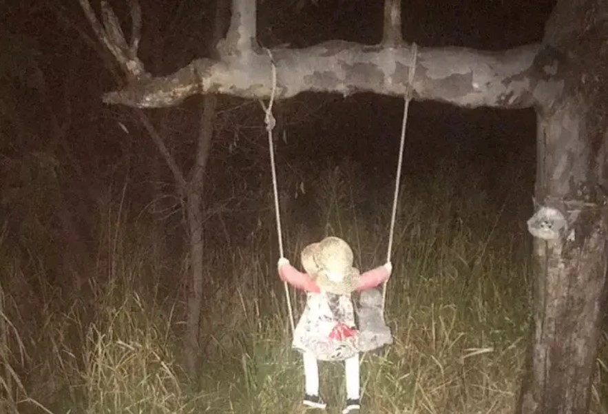Горожане перестали ходить мимо болот: там сидит на качелях жуткая кукла