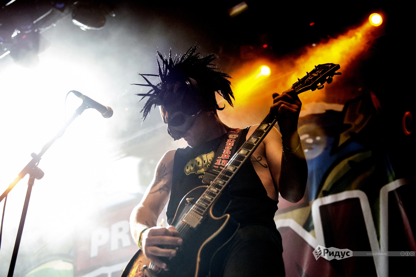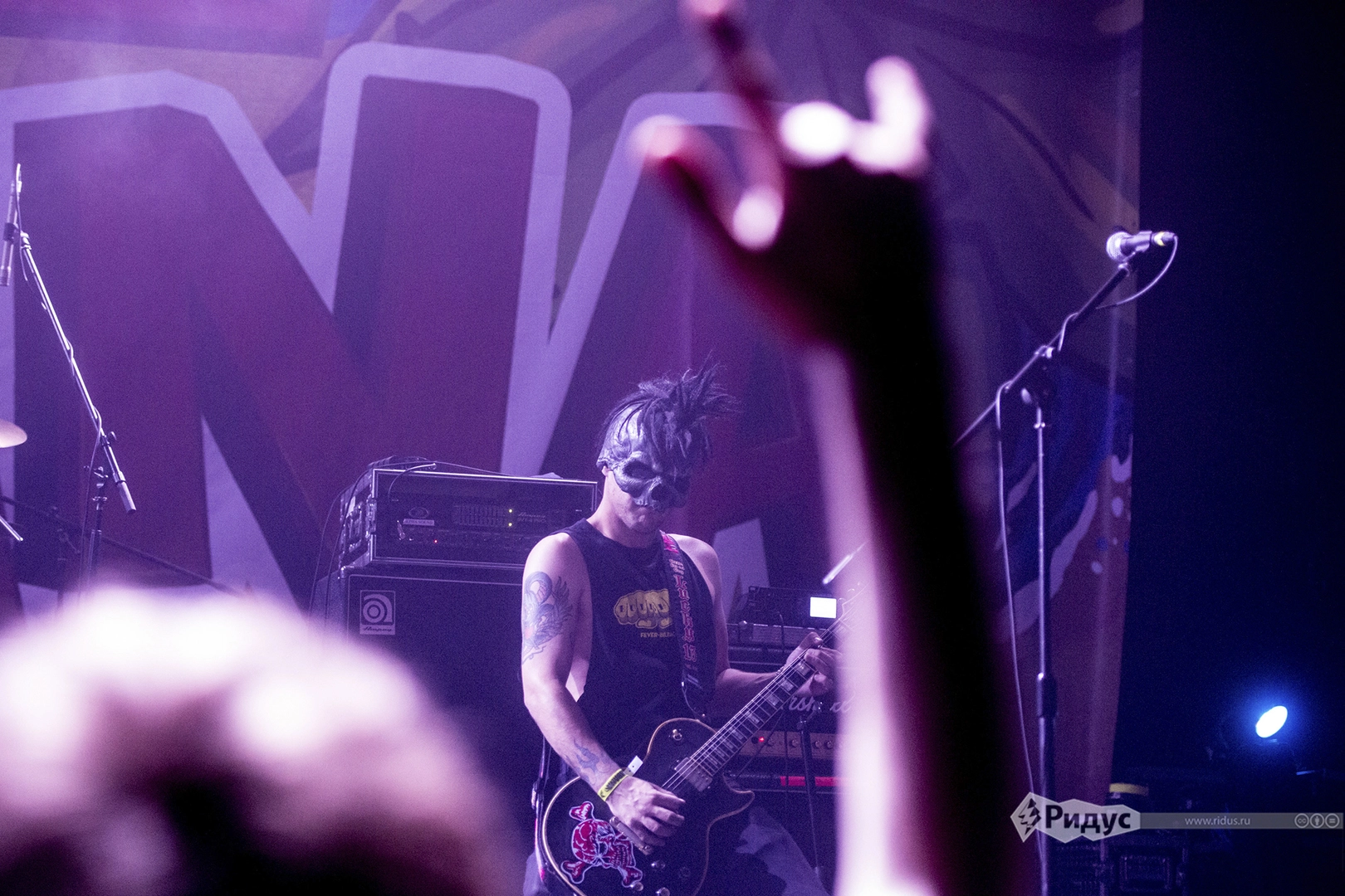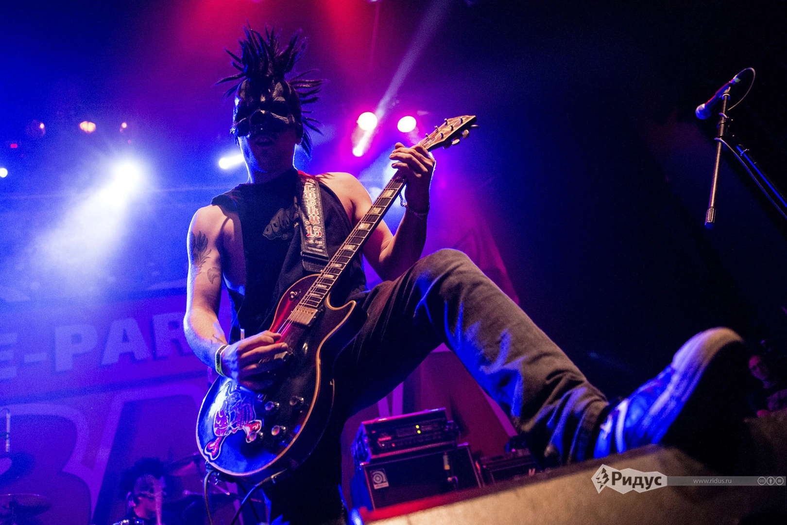 Открыла мероприятия быстро взлетевшая в европейских чартах, молодая мадридская команда GOMAD! & Monster. Эти ребята настоящие rave’n’roll-щики, как они сами называют свое музыкальное направление. Татуировки, пирсинг, харизма, экспрессия, вальяжные ни к чему не обязывающие движения — всем этим в избытке обладают музыканты. Кроме всего прочего, открою секрет: гитарист группы за 30 минут интервью успел напиться так, что начал разговаривать ассоциациями: «Россия для меня — это водка, девушки. нет, в первую очередь красивые девушки. И холод! Но от холода всегда можно согреться женщинами и водкой!», — говорит развеселившийся Док Инари (Doc Inari). При этом уже буквально через несколько часов, ребята «отмочили» отличный концерт, полный драйва и энергичных телодвижений фанатов.