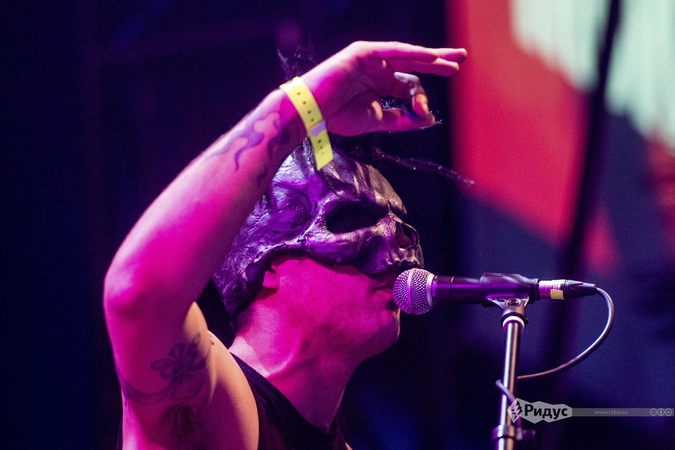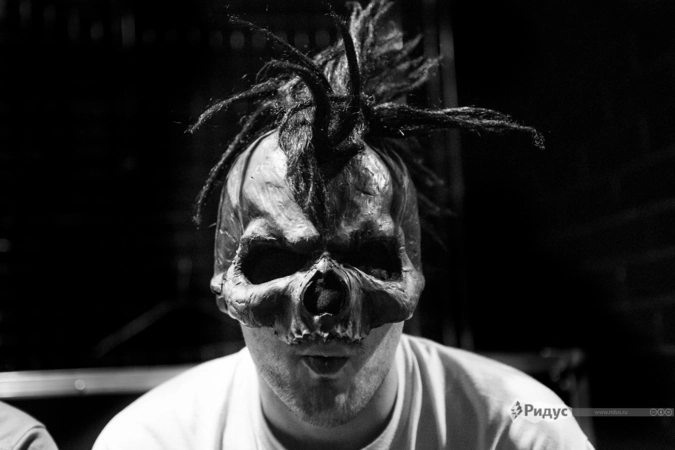 «Лица у нас самые обычные, как у всех (хотя несколько симпатичнее, чем у всех, прим. корреспондента). Двадцать метров от сцены и они уже никому не видны. Наши маски договаривают за нас некоторые вещи, но это не только эстетика или эпатаж. Вне сцены мы самые обычные парни, скромные и иногда даже неуверенные в себе. Маски, как костюм и грим для актера, помогают слиться с образом, перевоплотиться. В них, кстати, довольно тяжело выступать: жарко, ничего не видно, а самое смешное, когда я подаю какой-то знак, например Ивсу (YVES, барабанщик) — хрен знает, какая у него на это реакция. Но если наши маски исчезнут (не важно по чьей вине — авиакомпании, воров или еще кого-то), мы умрем. Клянусь, умрем!», — рассказывает Док Инари.