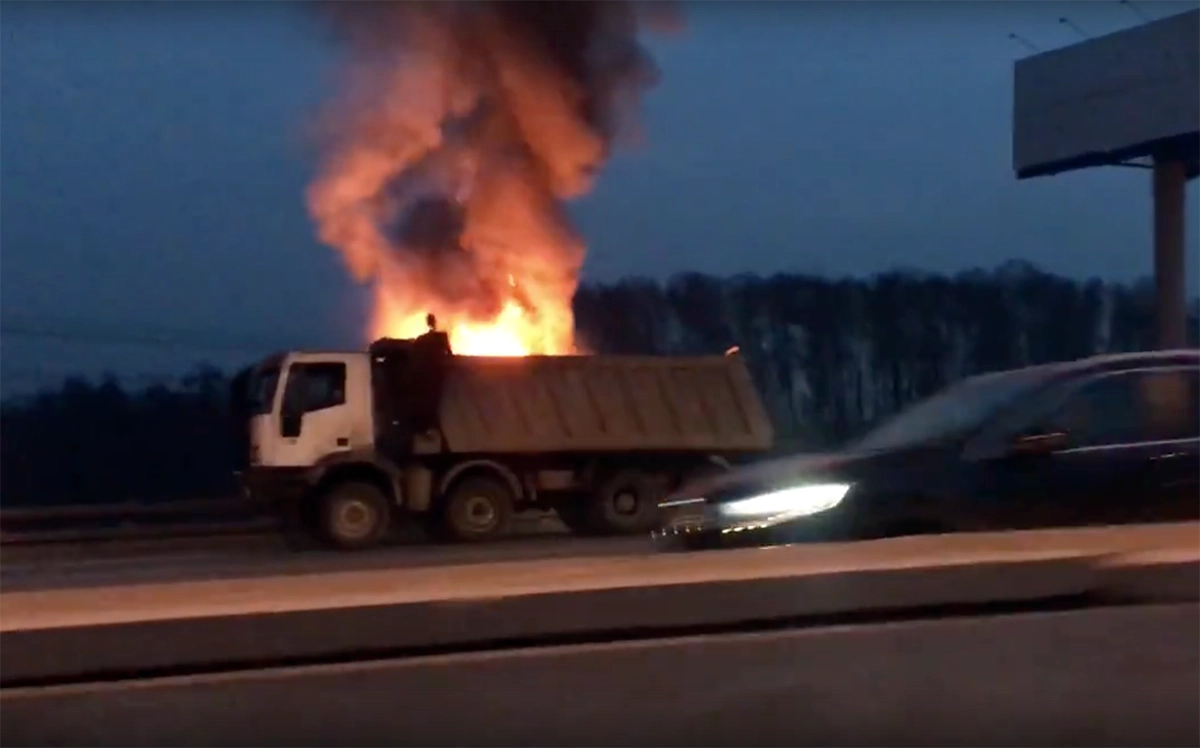 В социальной сети «ВКонтакте» опубликовано видео, запечатлевшее горящий грузовик, припаркованный на обочине оживленной трассы. Ролик был размещен очевидцем в 20:00 по московскому времени.