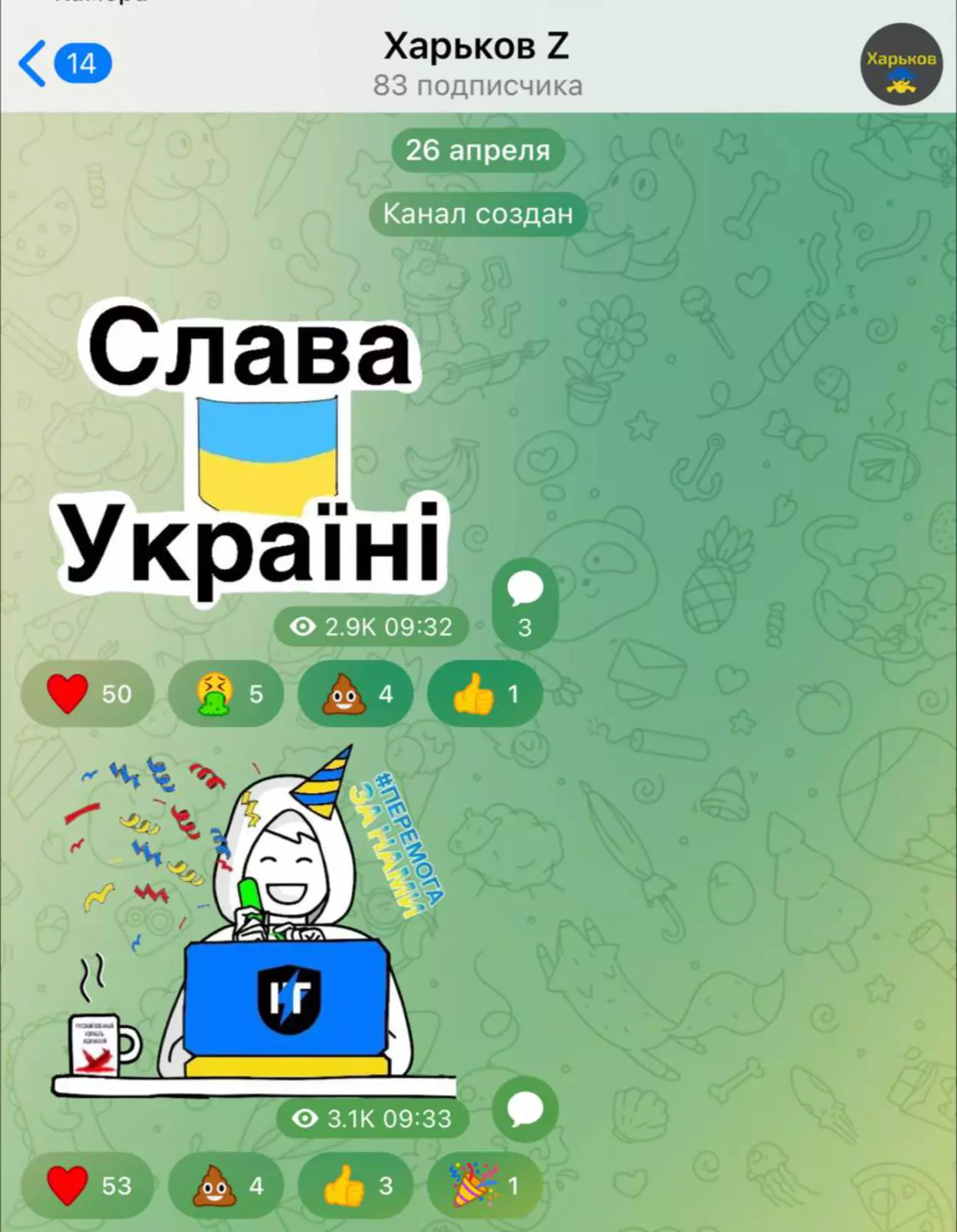Пост сопровождался фотографией газеты с QR-кодом, перейдя по которому юзеры попадают в проукраинский канал «Харьков Z», содержащий пропаганду Киева и оскорбления русских.