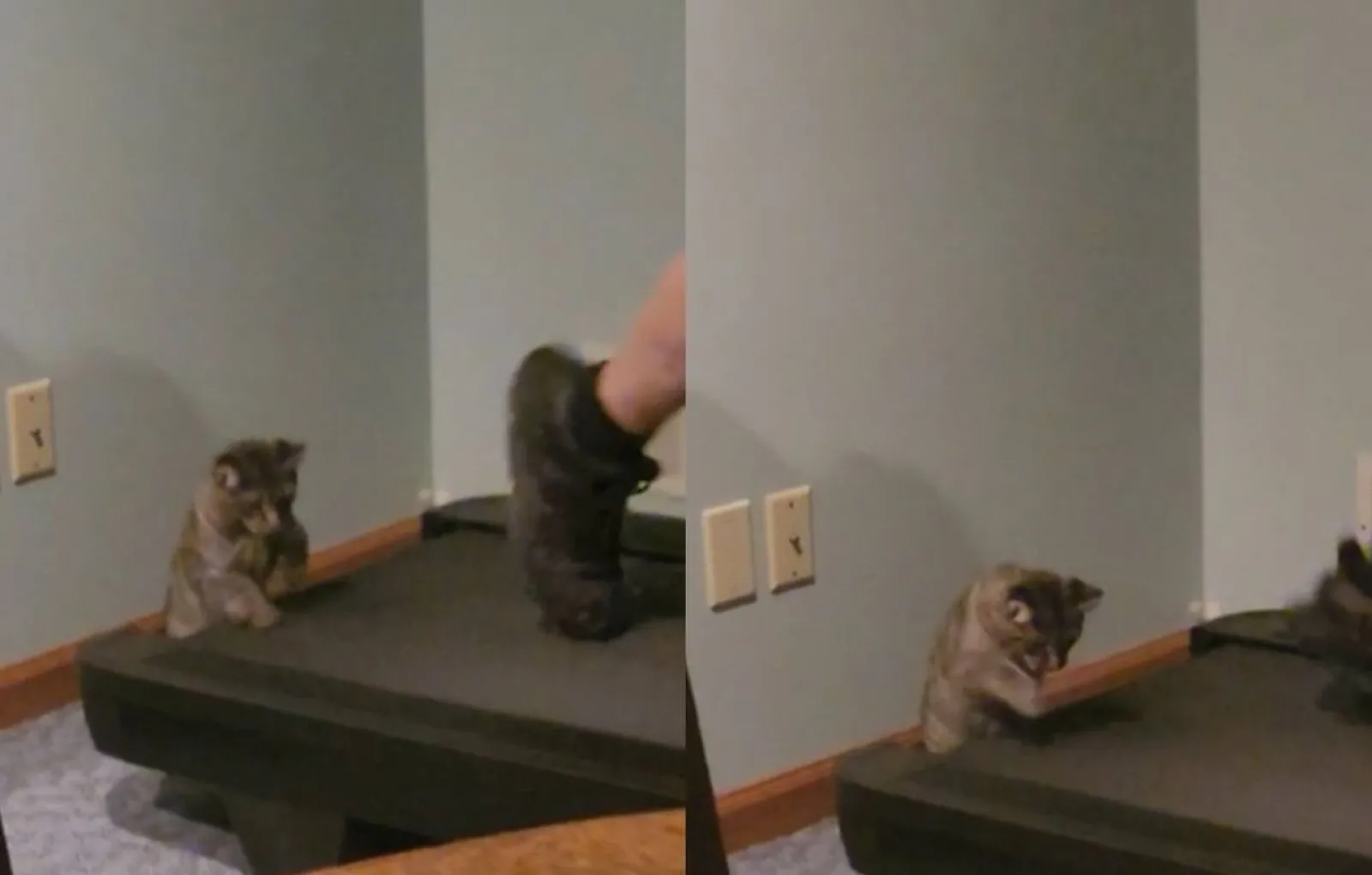Последовав примеру своего хозяина, этот пушистик тоже встал на тропу здорового образа жизни. Пока человек бегает, усатый спортсмен, не жалея сил, интенсивно разнимает свои передние мягкие лапки.