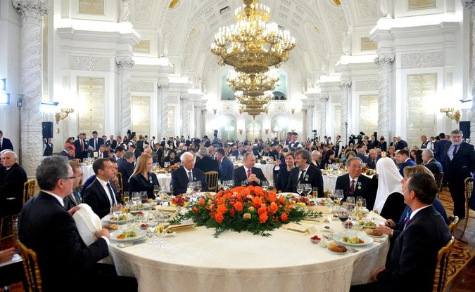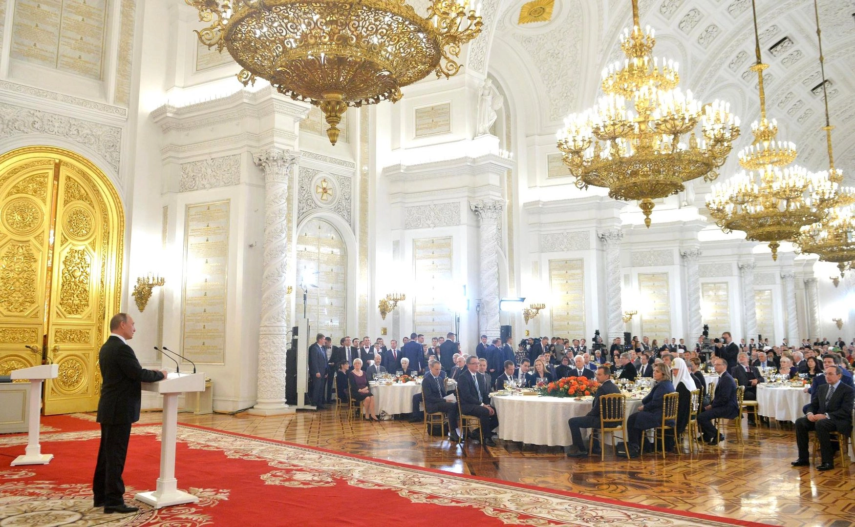 Сразу после посещения форума Путин возвращается в Кремль: на очереди — торжественный прием по случаю Дня народного единства, на котором глава государства вручил государственные награды — ордена Дружбы и медали Пушкина — иностранным гражданам за особые заслуги в укреплении мира, дружбы, сотрудничества и взаимопонимания между народами.
