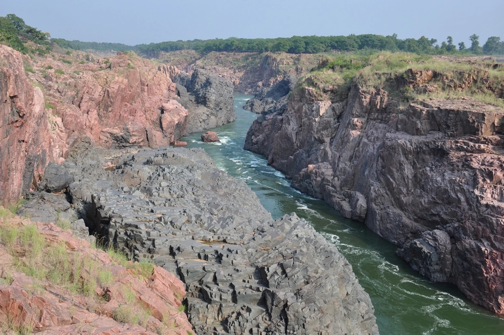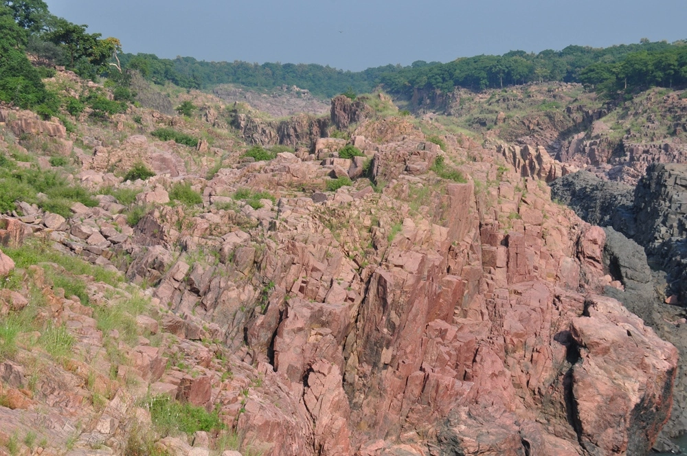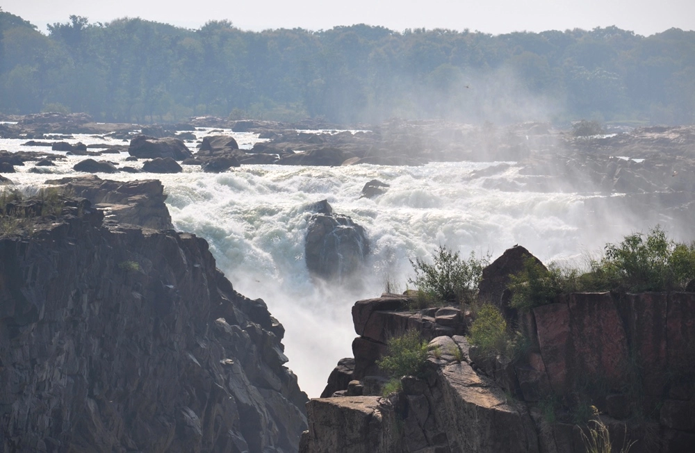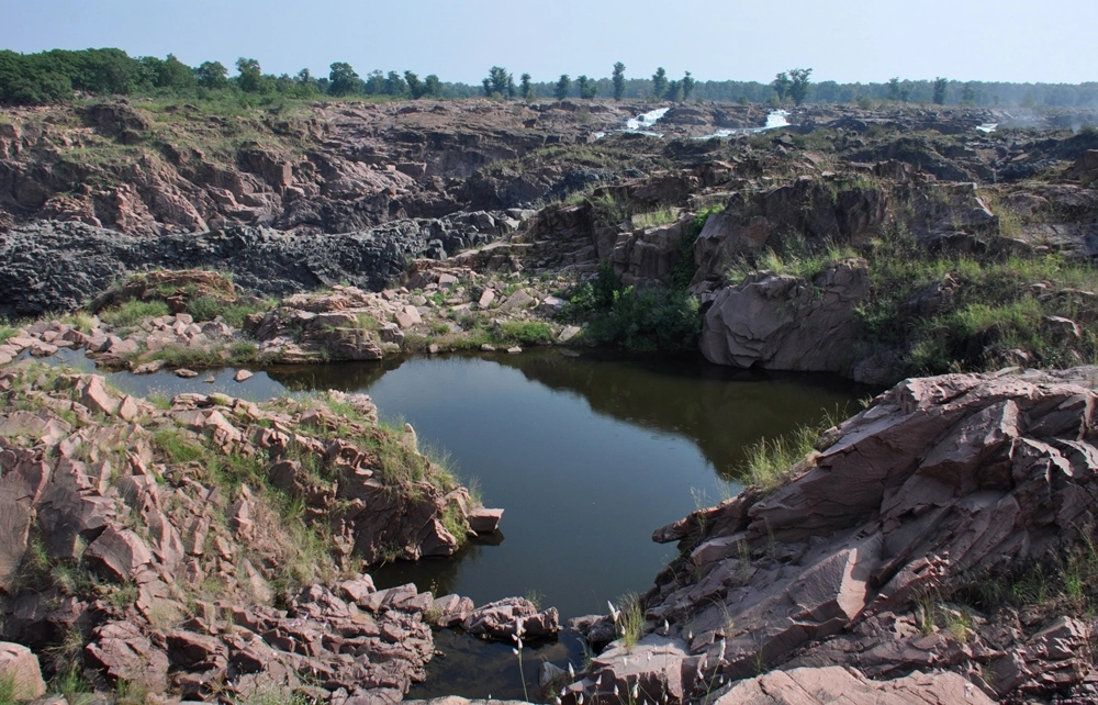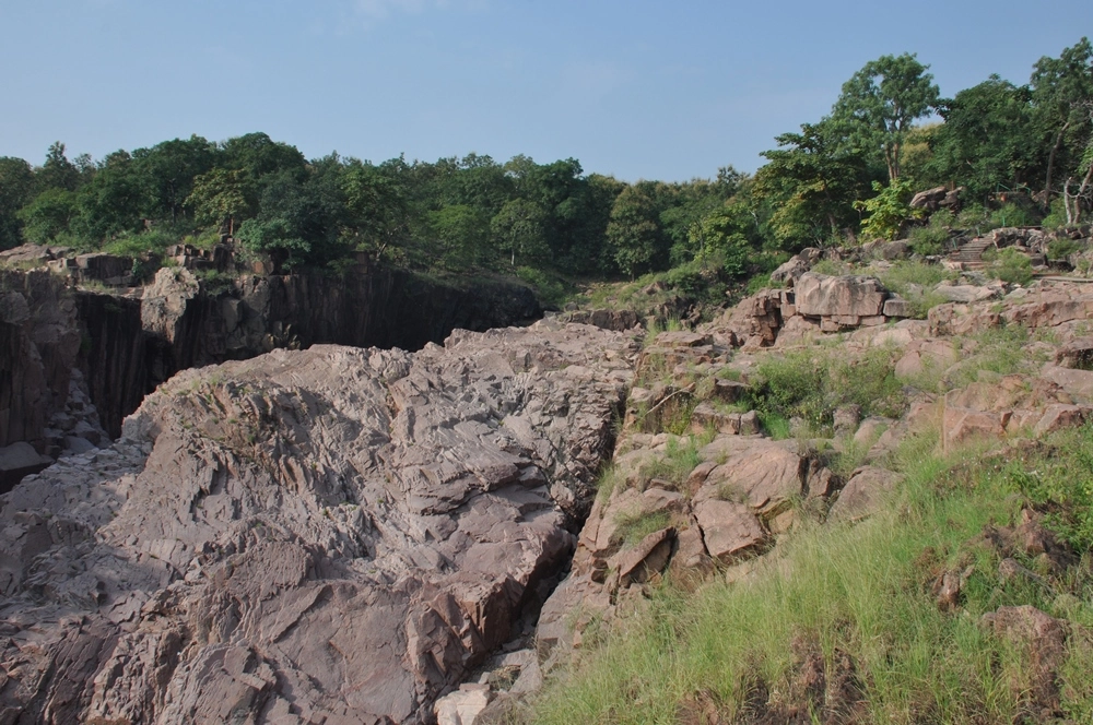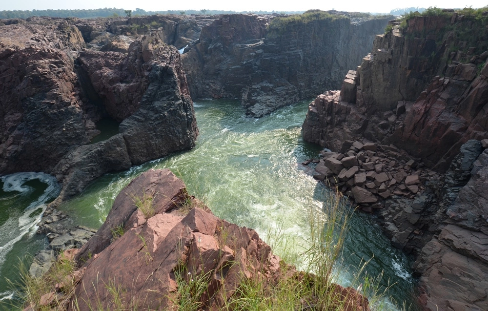 Ниже водопада река бежит между каменистых берегов, в окружении отвесных красноватых скал — эдакий «Гранд-Каньон Индии». :))