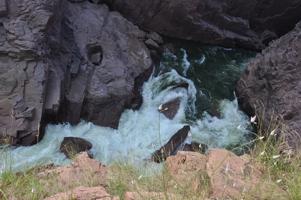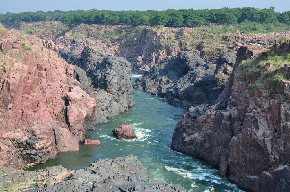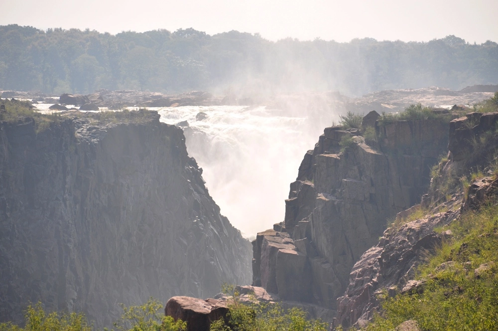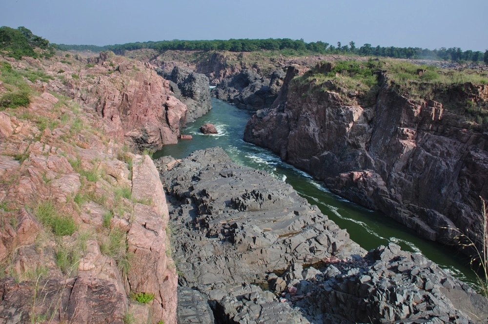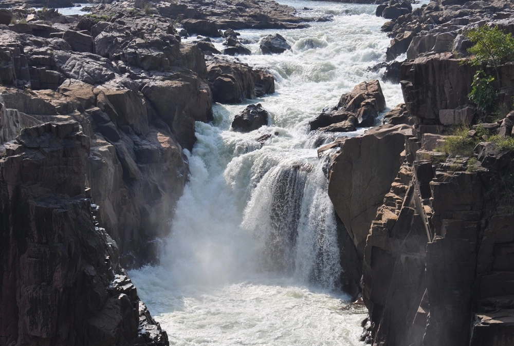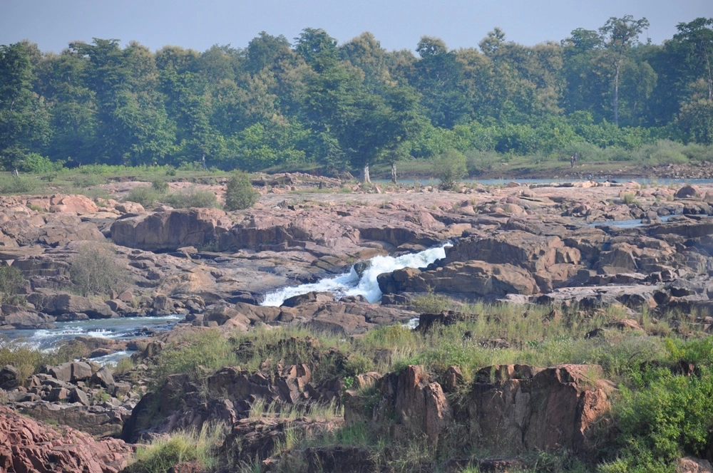 Ниже водопада река бежит между каменистых берегов, в окружении отвесных красноватых скал — эдакий «Гранд-Каньон Индии». :))