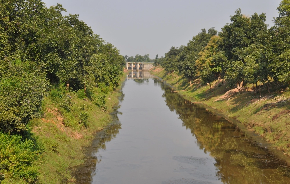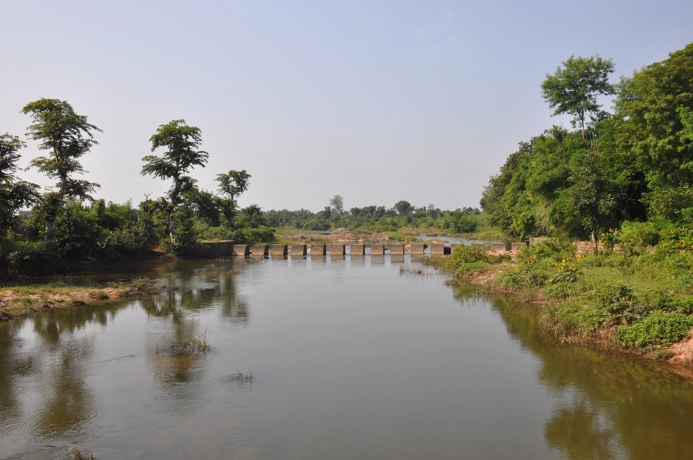 Обратная дорога в Кхаджурахо. Рукава реки Кен. Вода реки активно используется для орошения.