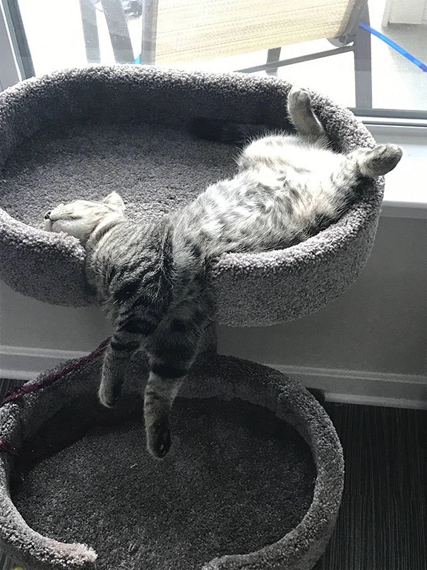 Человек любит удобство. Мы любим спать в мягкой постели, на свежих простынях, укрытые теплым одеялом. Мы можем только позавидовать способности кошек спать в совершенно любых позах — с вытянутыми ногами, на голове. Вот подборка фотографий, на которых кошки, кажется, доказывают, что могут лечь спать в самых неожиданных местах.