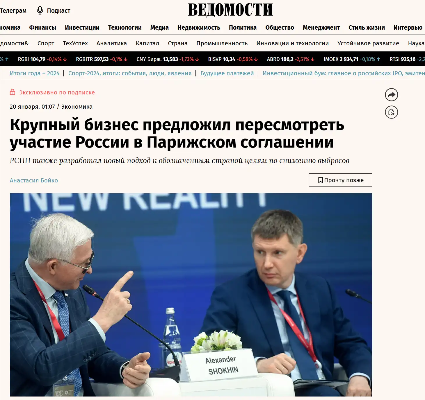 Незадолго до инаугурации Трампа глава Российского союза промышленников и предпринимателей (РСПП) Александр Шохин обратился к министру экономического развития РФ Максиму Решетникову с письмом, где предложил пересмотреть участие России в Парижском соглашении по климату и оценить необходимость дальнейшего участия в нём.