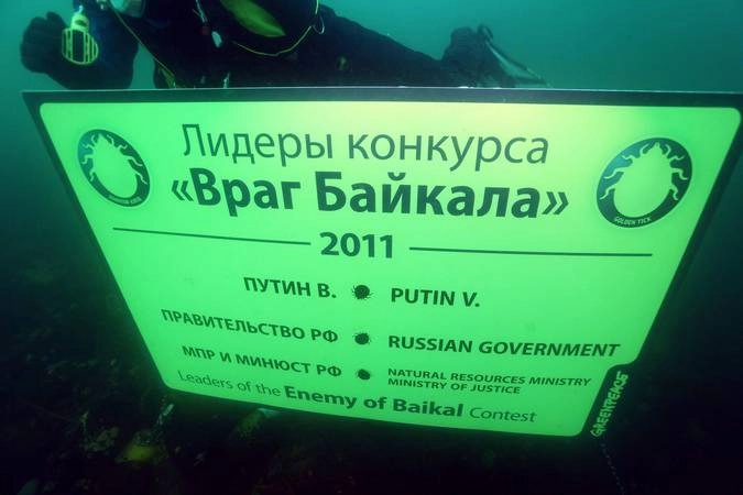 В эти дни имена победителей были «увековечены» на специальной табличке, которую аквалангисты Гринпис установили у подводной трубы, по которой в Байкал спускаются ядовитые стоки БЦБК.