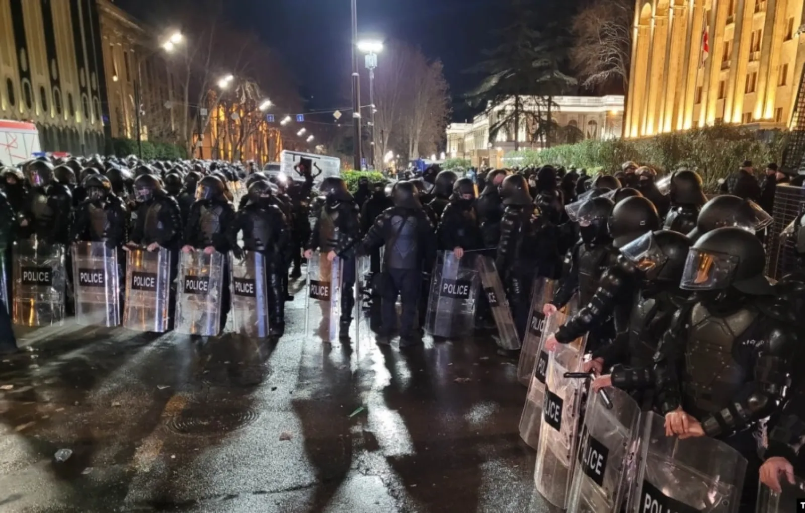 В Тбилиси отряды спецназа разогнали митингующих у здания парламента, сообщает ТАСС.