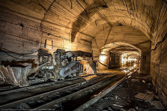 Выработка в сторону шахты. Дальше подтоплено и к самой шахте я идти не стал. Видео наших гуляний по метрострою.