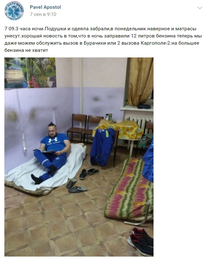 Позднее медик уточнил, что из комнаты унесли грязное постельное белье и принесли три раскладушки. Также была заправлена бензином машина скорой помощи. Однако Павел остался недоволен условиями работы врачей. В последнем посте он рассказал, что было проведено собрание, но диалог не получился — «главные вопросы даже не смогли задать».