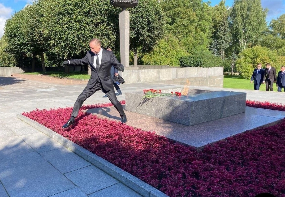 Губернатор Санкт-Петербурга перепрыгнул через клумбу и стал героем мемов