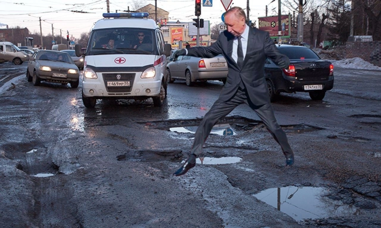 На фотожабах, опубликованных в паблике Санкт-Петербург Live, губернатор прыгает через ямы на дорогах, танцует в клипе Майкла Джексона и даже сражается в «Звездных войнах».