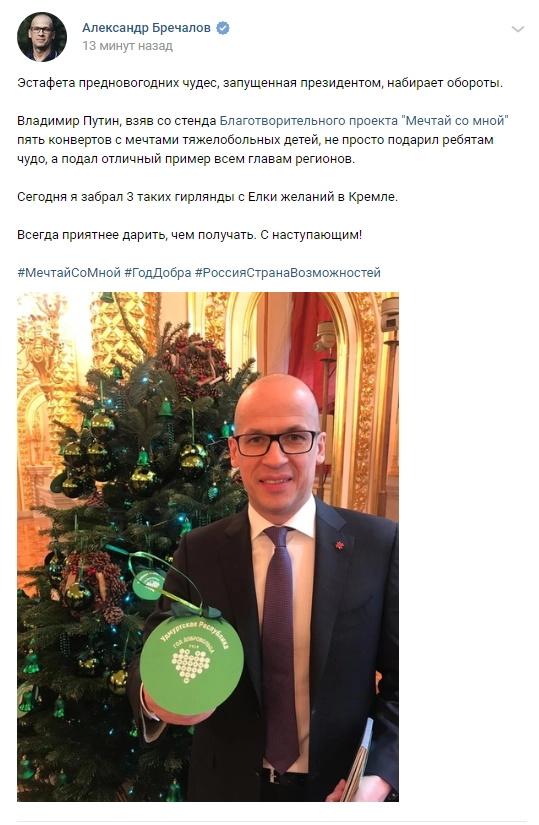 Губернатор Удмуртии Александр Бречалов собрал с «Елки желаний» три записки.