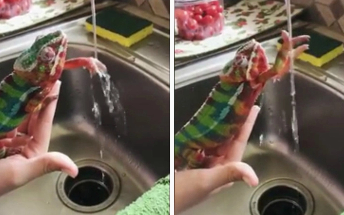 Хамелеон помыл лапки и похитил сердца пользователей соцсетей