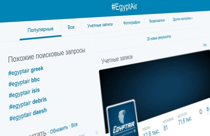 Хештег #EgyptAir возглавил топ в Twitter