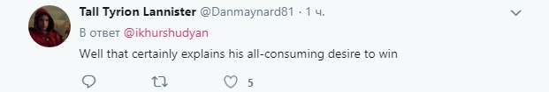 «Это полностью объясняет его непреодолимое желание победить», — поддержал обсуждение еще один молодой человек.