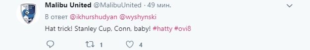«Не по теме, но Овечкин и его жена ожидают первенца. Она сегодня присутствовала на льду вместе с сестрой и отцом. Фанаты поздравили их с ее беременностью», — написала она.