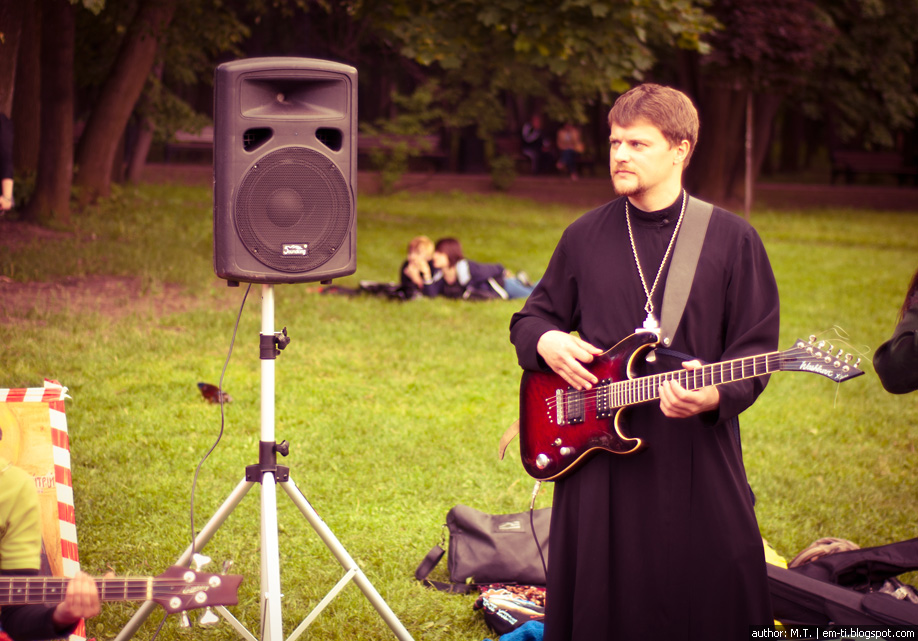 В этот раз приходил даже православный священник (о появлении которого я узнал от знакомого трансгуманиста, проходившего мимо), он играл на электрогитаре и задвинул речь, по словам очевидцев, что-то про свободу, а затем исчез.