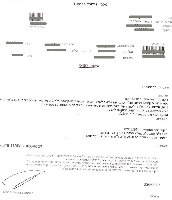 Наконец-то пришло письмо из адвокатской конторы, что инцидент из-за 500 шекелей «незаконно» взысканных с их самих исчерпан. Наверное, они как-то разрулились с больницей.