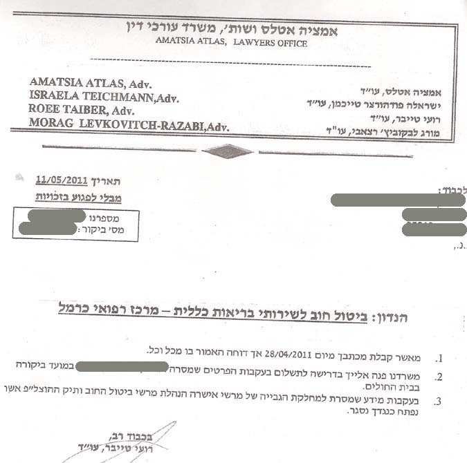 Пришло письмо из больницы «Кармель», что оказывается туристка им ничего не была должна изначально. Дело в том, что у нее была туристическая страховка и страховая как известно выплачивает не моментально, а спустя какое-то время. Но больница не стала ждать и зачем-то передала дела адвокатам. А те не стали разбираться и решили побыстрому обокрасть людей, не имевших никакого отношения ни к туристке, ни к ее долгам. Еще и долгам несуществующим, поскольку страховая все выплатила спустя несколько месяцев еще в 2008 году. После чего 10 лет стороны продолжали мстить друг-другу на пустом месте.