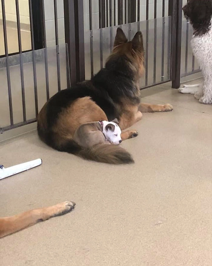 Сотрудники центра рассказали девушке, что Эдна отлично ладит со всеми собаками. Она носится и играет по несколько часов, а когда приходит время сна, то собака выбирает себе самого пушистого компаньона по отдыху и нагло пользуется его мягкостью.