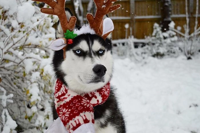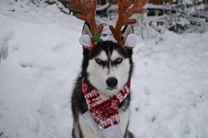 Хмурый хаски в рождественской фотосессии стал звездой интернета