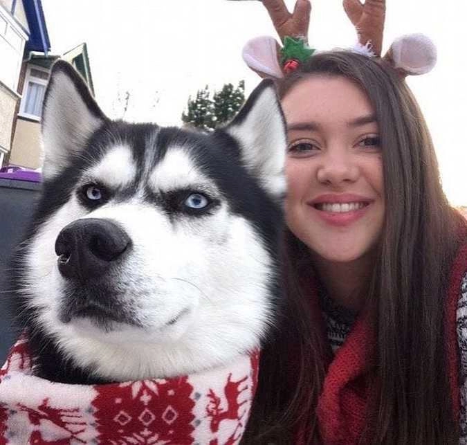 Иногда новогоднее настроение никак не приходит, несмотря на различные ухищрения. Девушка по имени Жасмин решила снять свою хаски по прозвищу Анука в праздничной фотосессии. Однако собака не разделила восторг своей хозяйки и на всех снимках выглядит весьма сердитой. Но девушка утверждает, что Анука — очень добрый, весёлый и отзывчивый пёс, который в своё время помог ей справиться с тяжёлыми психологическими проблемами.