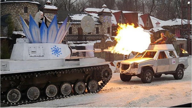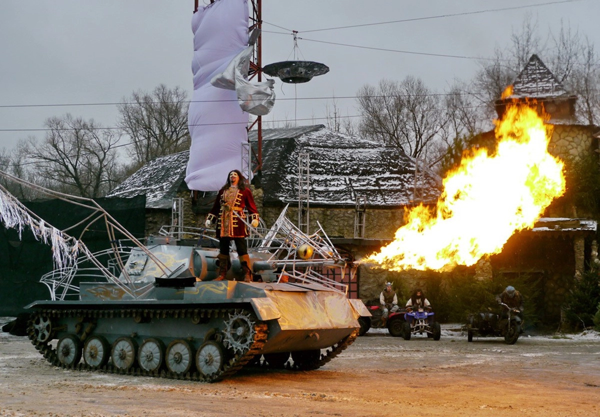 В этот раз за основу взят «Властелин колец», вот только ставшие уже привычными герои вместо коней и орлов оседлают каскадерскую технику. Орки-гангстеры будут строить козни на огнемобиле, затесавшаяся в их компанию баба-яга сделает сальто на мотоцикле, а дед Мороз и вовсе прикатит на настоящем танке.