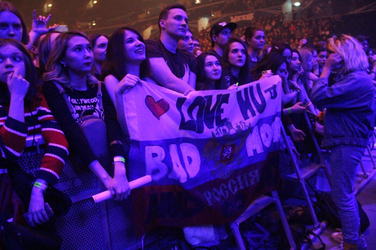 Классическая забава Hollywood Undead — поднимать на сцене флаг страны, в которой проходит шоу. Московский концерт в ВТБ-Арене не стал исключением — и триколор, который принесли с собой фанаты, стал полноправным участником музыкального действа.