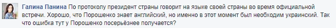 Сеть также не обошла вниманием отличный уровень владения английским языком у Порошенко. Американцы даже констатировали, что он владеет им лучше, чем Дональд Трамп: «Интересно, что президент Украины во время приветствия оказался более красноречивым, он говорит на английском языке лучше, чем Трамп». Но в Рунете выступление Петра Порошенко на английском языке посчитали нарушением этикета: будучи президентом, он должен говорить на языке своей страны.