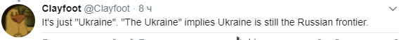А президент США действительно допустил грамматическую ошибку в своей речи. По случайному (а может, и нет) стечению обстоятельств ошибка была в самой больной для украинцев теме: он использовал артикль the перед словом «Украина». Это старая норма в английском языке, и существовала она в то время, когда Украина входила в состав СССР. «Просто Украина. С артиклем — значит, она все еще в границах России», — поясняют американские пользователи в Twitter.