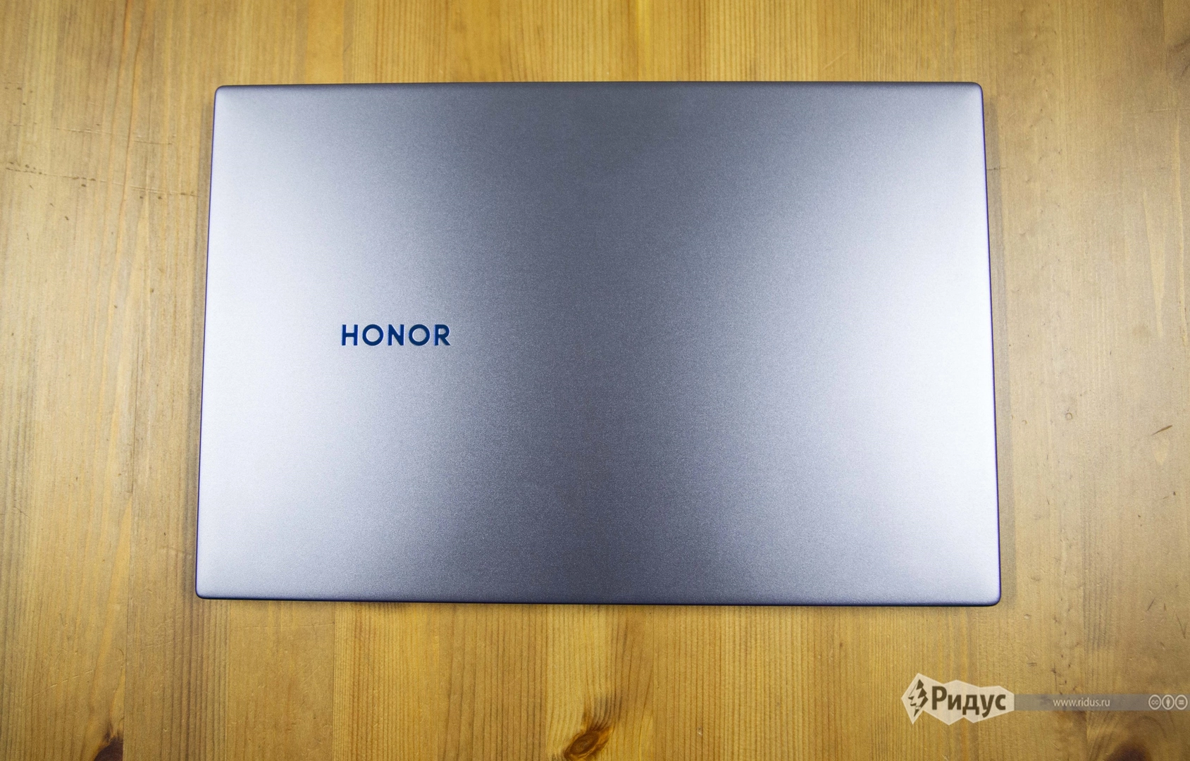 Honor MagicBook 14 выглядит не только стильно, но дороже, чем он есть на самом деле. Корпус, как полагается премиальным устройствам, выполнен полностью из металла. В России ноутбук продается только в одном цветовом решении — темно-сером. При этом цвет в зависимости от освещения играет то синеватым, то немного сиреневым оттенками. Бренд ответственно подошел к дизайнерским деталям, поэтому спутать Honor MagicBook 14 с другими ноутбуками достаточно сложно. По периметру верхней крышки была выполнена алмазная полировка, благодаря чему на свету грани играют синим цветом. Точно таким же синим цветом переливается и логотип бренда Honor.