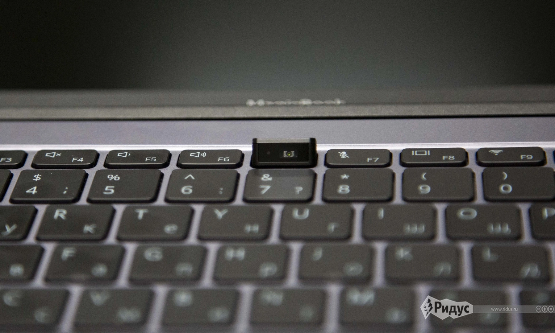 Дизайн же самого дисплея у Honor MagicBook 14 гораздо интереснее. По трем сторонам он имеет минимальные рамки, за счет чего 14-дюймовый ноутбук по габаритам корпуса меньше многих 13-дюймовых конкурентов. Из-а минимальной ширины верхней рамки на ней не нашлось места под фронтальную камеру. Фронталка размещена в клавиатуре между клавишами F6 и F7. Это явно не самое удобное решение для тех, кто часто звонит по видеосвязи, потому что камера снимает пользователя снизу, а это очень неудачный ракурс. А для тех, кто забыл о существовании Skype и видеоконференциях и звонит по видеосвязи только через смартфоны, такое решение не станет проблемным.