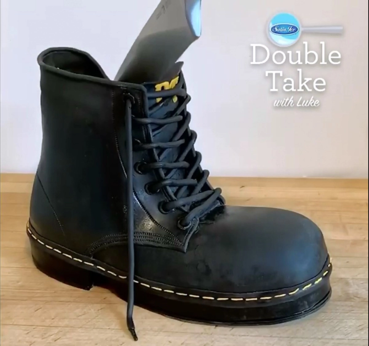 Этот ролик набрал в соцсетях почти полмиллиона просмотров. Отличный ботинок, можно было бы прикупить на зиму. Хотя постойте, почему его разрезают ножом? Это торт?! Ничему нельзя верить. Как жить в мире, где торты похожи на ботинки. Теперь всю обувь придется проверять, а то мало ли — сунешь ногу в кулинарный шедевр.