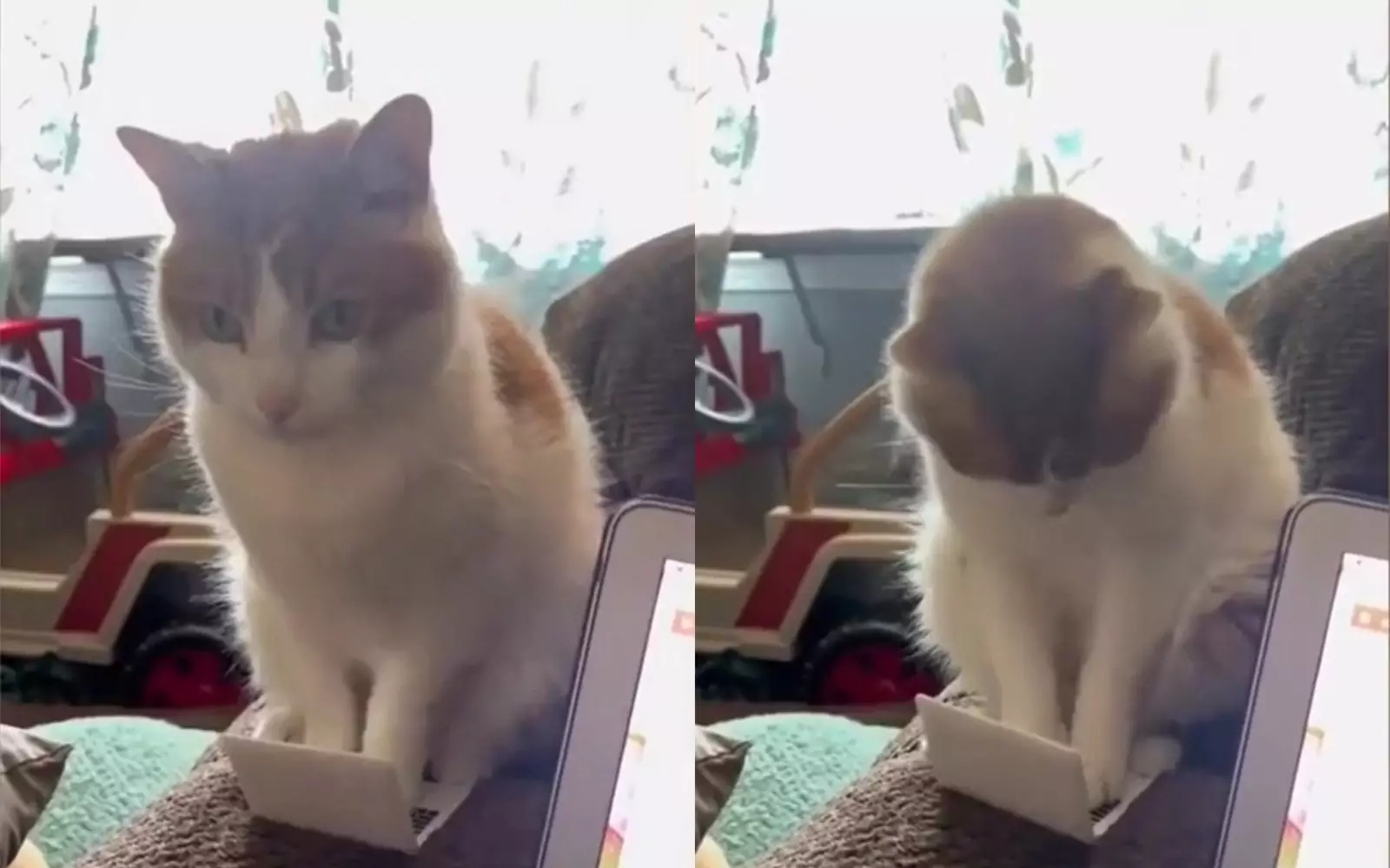Многих котиков интересуют ноутбуки хозяев. Им нравится гулять по клавиатуре, спать на ней, хаотично нажимать кнопки и так далее. Чтобы котофей не мешал работать, авторы этого видео купили ему собственный мини-лэптоп, и не прогадали.