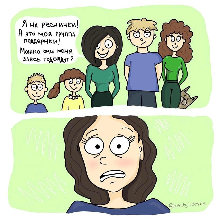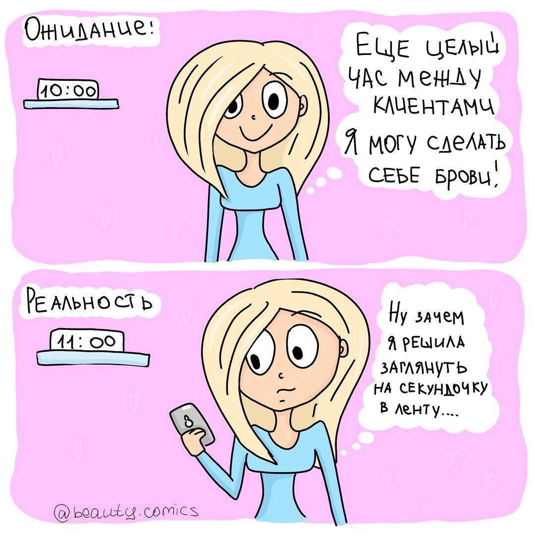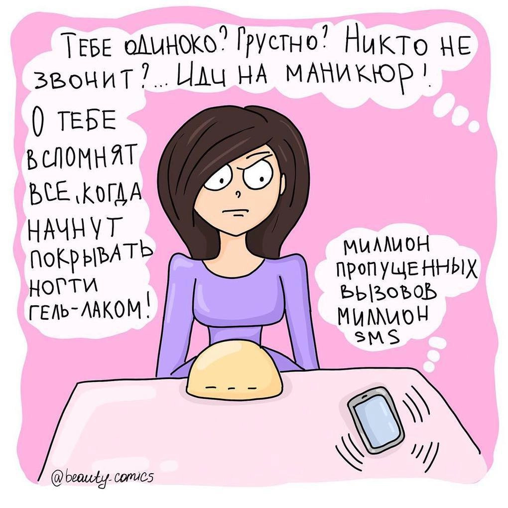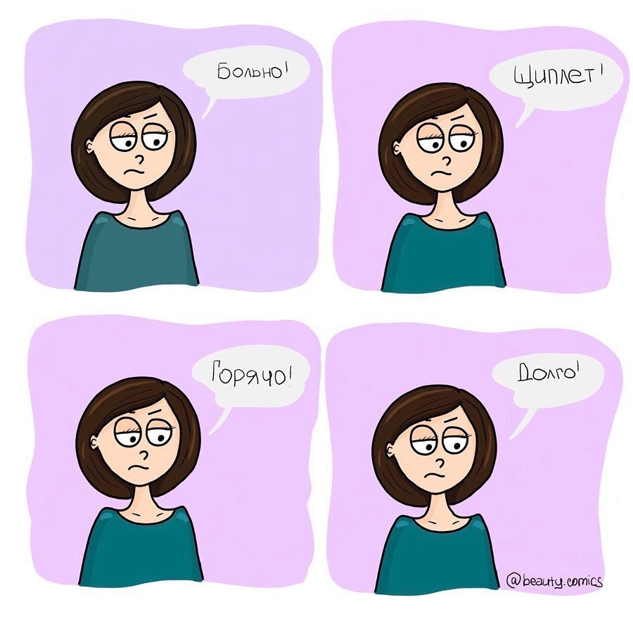 28-летняя Мария Зык живёт в Екатеринбурге и руководит своей небольшой студией красоты. А в свободное от ноготочков и ресничек время рисует забавные бьюти-комиксы о буднях мастеров и непростых клиентах. На своей страничке в Instagram Мария рассказывает, что по образованию она журналист, но работать по специальности не захотела и решила открыть собственный бизнес. А рисовать любит с детства и даже училась в художественной школе.