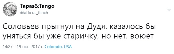 Пока блогер никак не ответил на оскорбления Соловьева. Пользователи Сети посчитали, что нападка телеведущего послужит хорошей рекламой для YouTube-канала Дудя.