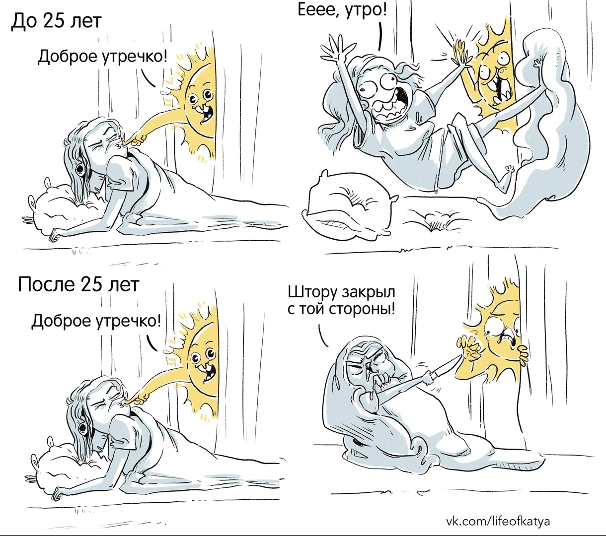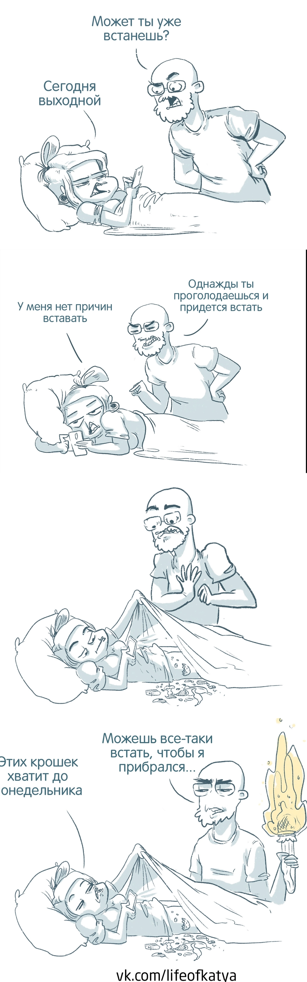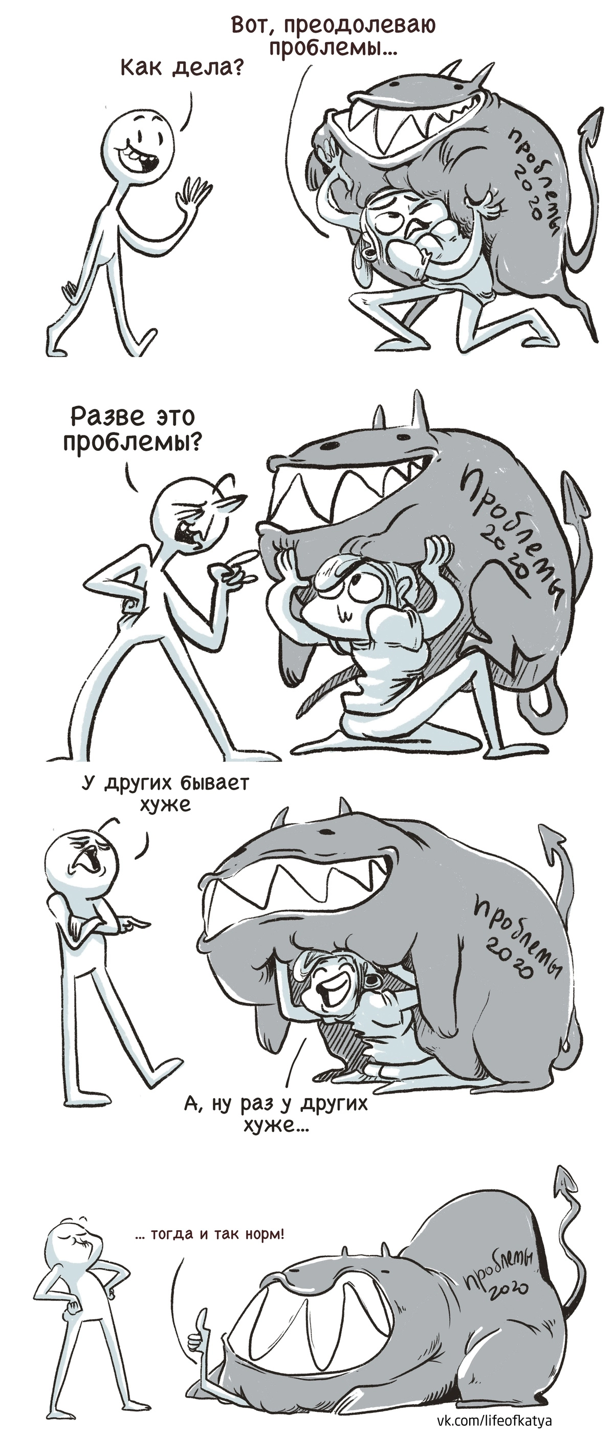 Подобного мнения придерживается художница из Санкт-Петербурга Екатерина Богаднова, которая с 2016 года радует 20 тысяч своих подписчиков уморительными комиксами о жизни, проблемах и курьезных ситуациях.
