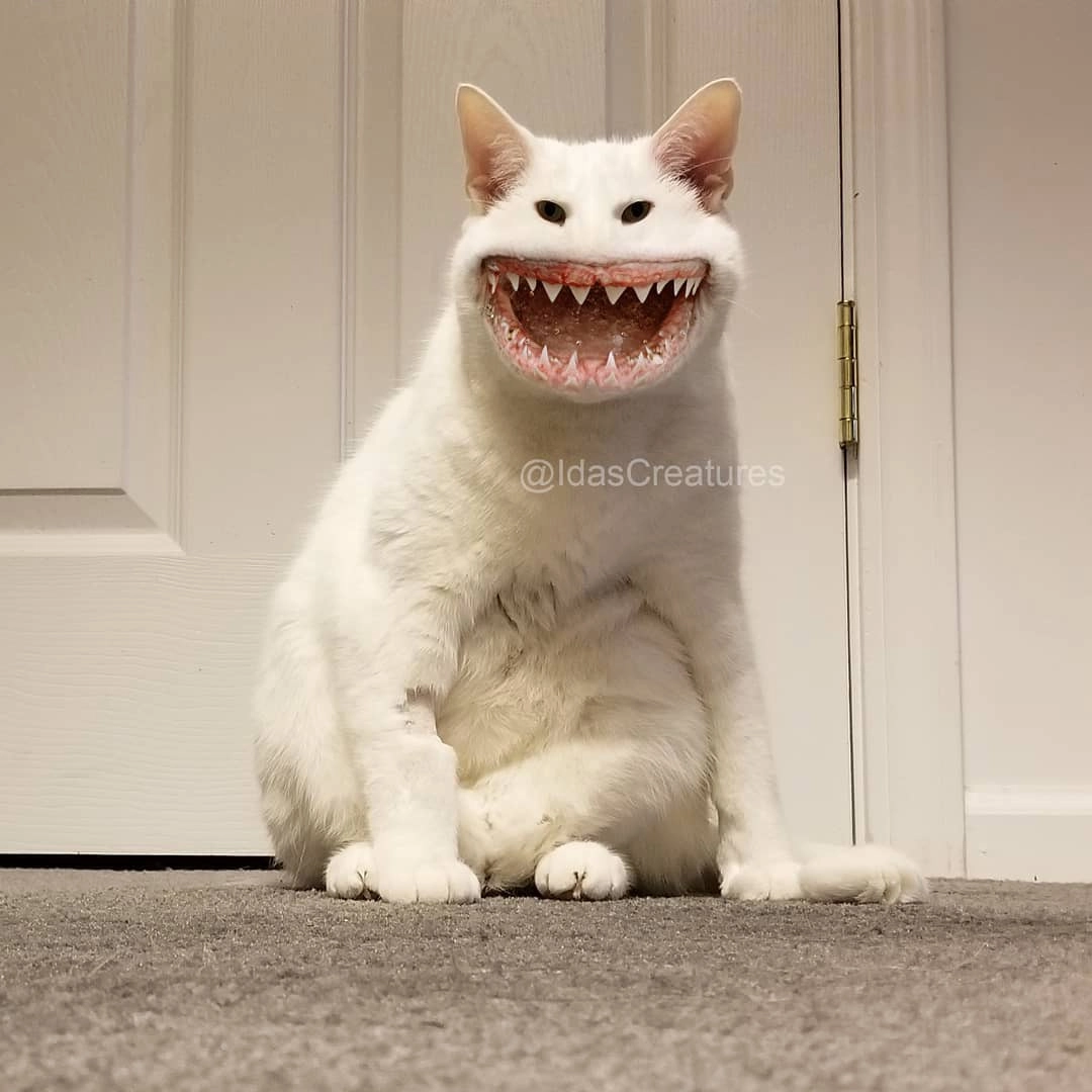 У девушки по имени Ида (Ida) слабость к животным и буйная фантазия. Поэтому в свободное время девушка фотошопит котиков, собачек и прочих милых питомцев, превращая их в ужасающих монстров — со множеством глаз, оскаленной пастью и странными мордами. Как следует из Instagram фотохудожницы, любой желающий может отправить ей фотографию своего любимого животного, а Ида превратит его в героя фильмов ужасов и ваших кошмаров. И самое любопытное, что желающие находятся — на страницу фантазёрки подписались уже больше 10 тысяч человек. Давайте посмотрим.