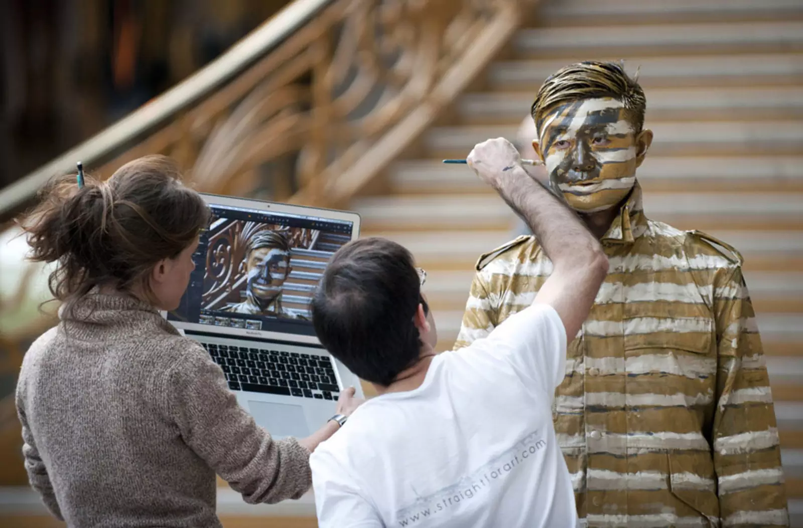 Художник исчезает в пространстве с помощью краски для тела: 15+ фото