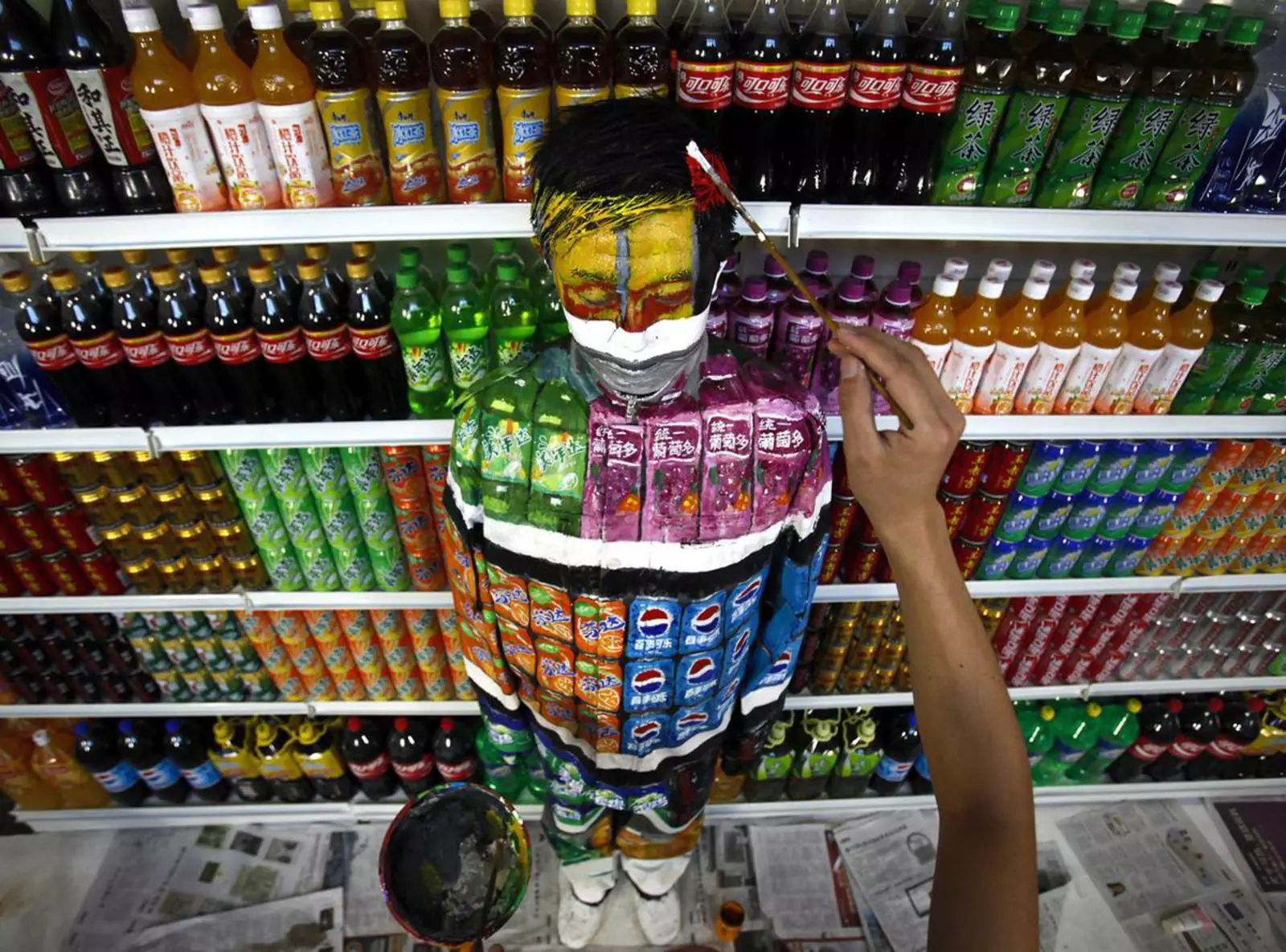 Коллеги прячут Лю Болина в рядах безалкогольных напитков в своей работе под названием «Пластификатор», 10 августа 2011 года.